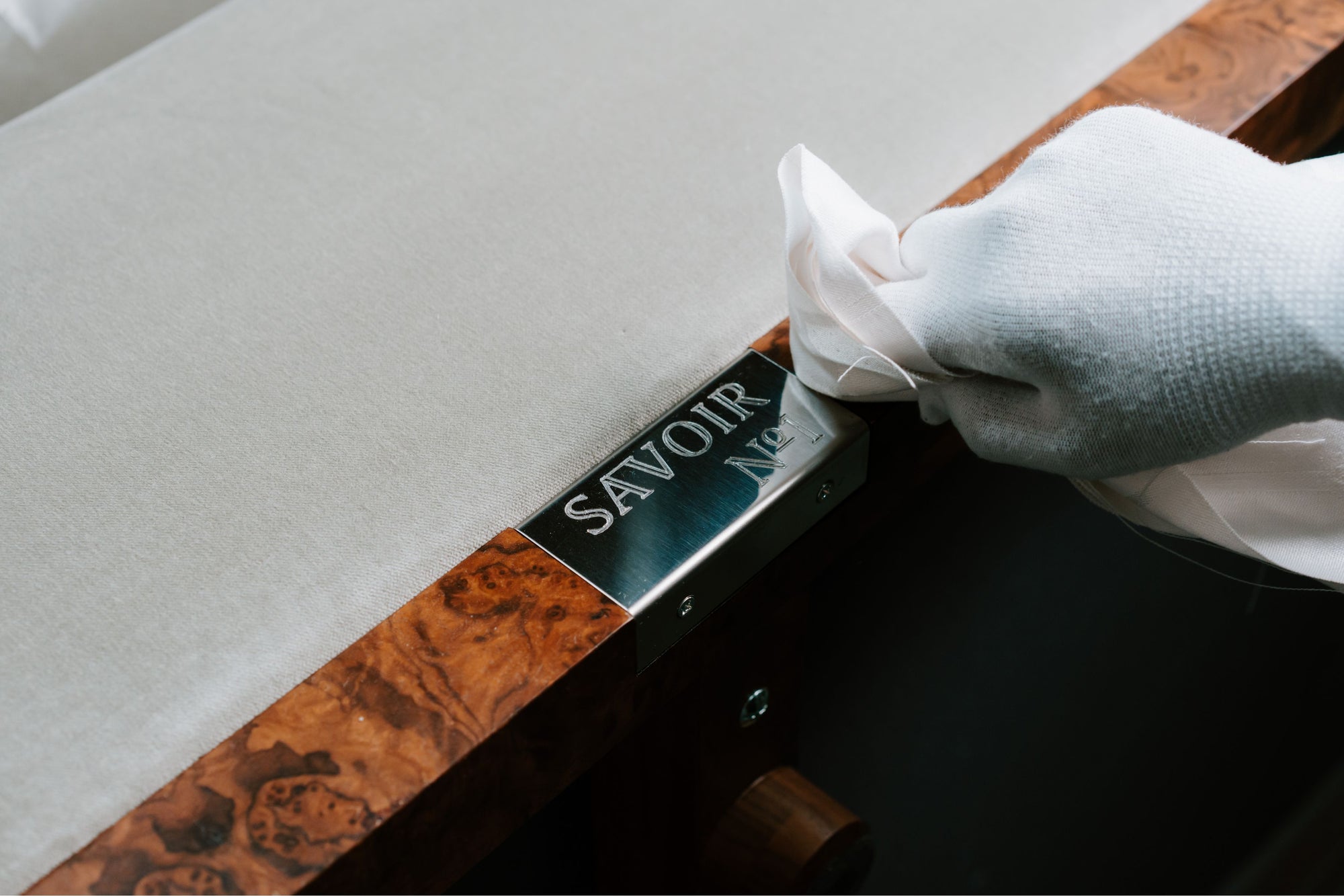 Every Savoir Nº1 bed is a masterpiece, constructed and perfected by a single craftsperson in our London bedworks. When every detail is complete, they sign, like an artist, on the label.